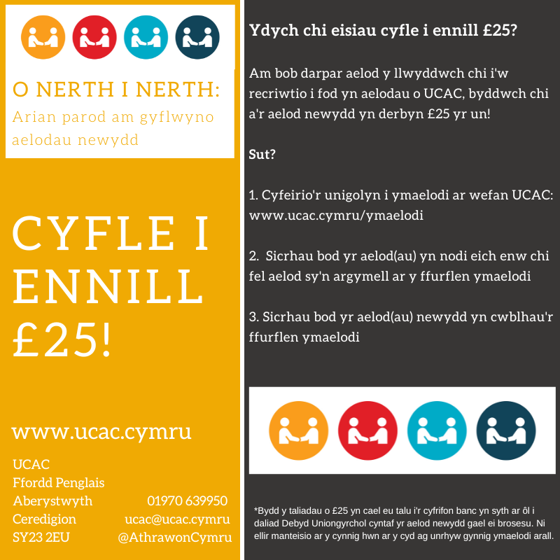 Os ydych chi am i ni anfon cyflenwad o ffurflenni ymaelodi at eich ysgol neu goleg, anfonwch ebost at Mae'r cyfeiriad e-bost hwn wedi'i warchod rhag robotiaid sbam. Rhaid i chi alluogi JavaScript i'w weld.